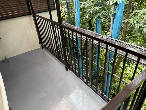 テラスはコケが生えて滑る危険性もあるため、安全のために床の防水施工をさせていただきました。