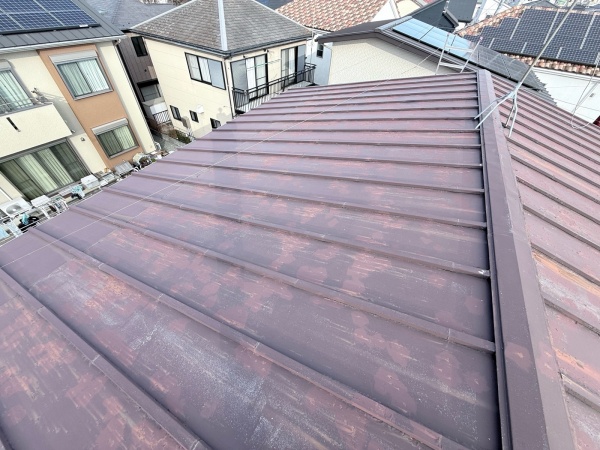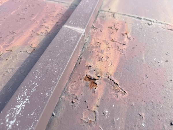 経年により塗膜が剥がれ、屋根材に錆が発生している状況になります。
