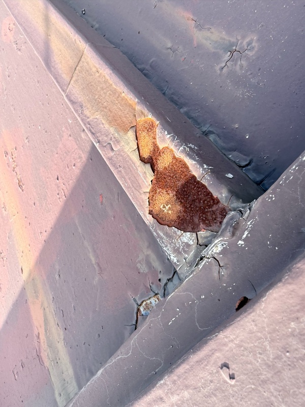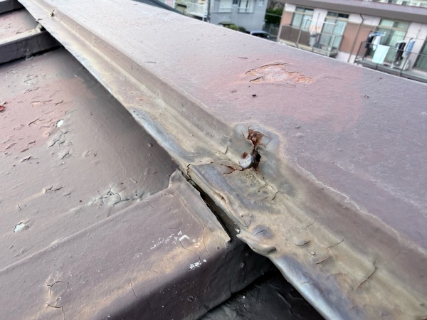 錆びている部分をこのままにしておくと、当然ながら穴が空き雨漏りにつながる恐れがあります。