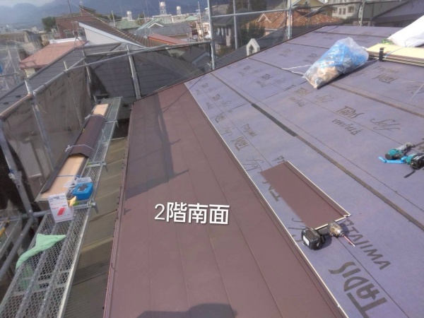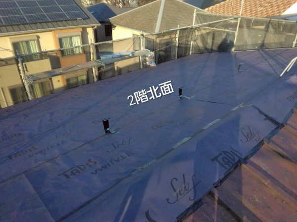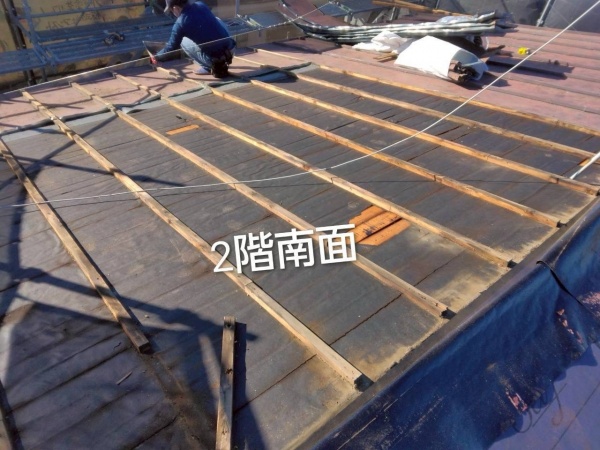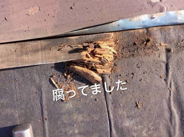 屋根材の下に防水シートが貼ってありますが、築年数から考えると防水シートも劣化していると推測できます。