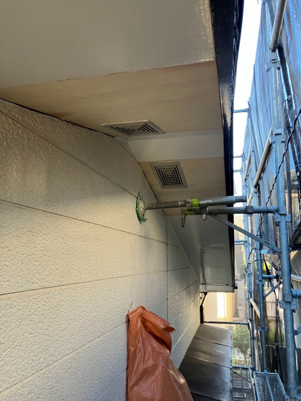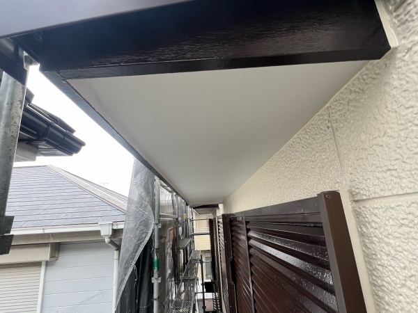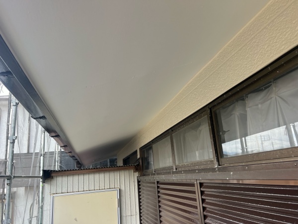 軒天に使用している塗料は透湿性(とうしつせい)があり、防カビ性能も備えた塗料になります。
