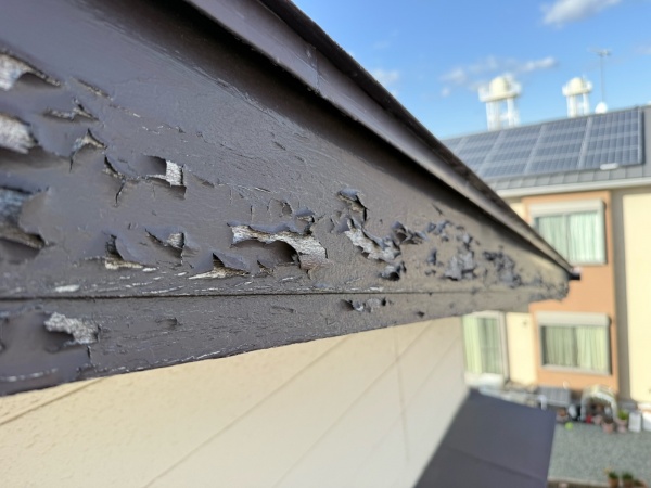 剥がれや浮いてしまった旧塗膜を除去、下地を整え塗装をさせていただきました。